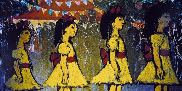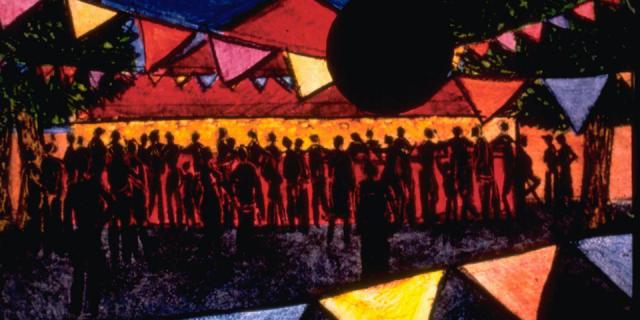 Sud de la France, un dimanche d'août. Petit à petit, la place du village s'anime, les musiciens s'accordent, les enfants crient, la fête commence...